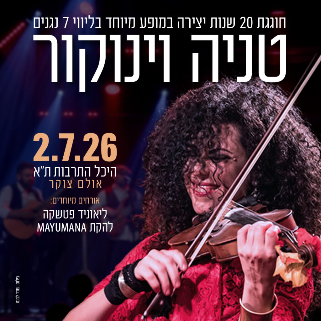 טניה וינוקור נחשבת לאחת היוצרות הבולטות והייחודיות בנוף המוזיקה הישראלית. במרכז יצירתה עומד הכינור – מהכלים המזוהים ביותר עם התרבות היהודית – המקבל חיים חדשים במופע עוצר נשימה המחבר בין מוזיקה יהודית, צוענית, בלקנית, ספרדית וים תיכונית. וינוקור שוזרת בווירטואוזיות נדירה בין נגינה, שירה בשפות רבות וריקוד ויוצרת חוויה בימתית פיזית ורגשית שאין דומה לה.